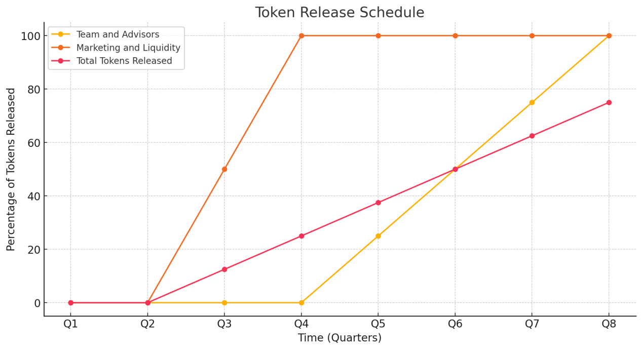 <figure><img src="https://1431599598-files.gitbook.io/~/files/v0/b/gitbook-x-prod.appspot.com/o/spaces%2FxqURhfaNYurHd2Oa0g4q%2Fuploads%2FRjbYEh3YkXFwX9niB90V%2FImagem1.png?alt=media&#x26;token=7462e09f-ed7e-4067-8cee-3249ea1aba25" alt="" width="563"><figcaption><p>Token Release Schedule Line Chart</p></figcaption></figure>